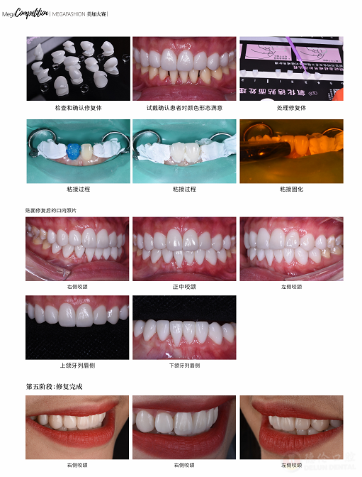 参赛的案例是牙周正畸美学多学科联合治疗,此案例患者牙齿缝隙大、牙黄、整体美观度欠缺,想短时间内快捷美牙。单一的修复方案无法达到理想的鲜果,制定正畸、贴面联合修复方案,矫正调整牙缝过大的问题,给贴面修复提供更加微创的条件,通过美加超薄美学贴面修复,实现全口牙齿持久美白。