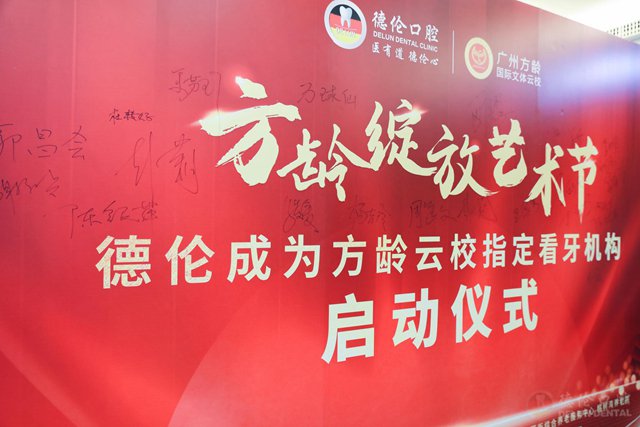 双方领导签署合作协议,德伦口腔正式成为方龄国际文体云校指定看牙机构。