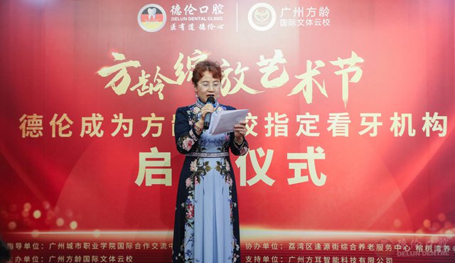 方龄绽放艺术节组委会主席兼主任委员杨吉玲主席致辞,德伦口腔与方龄云校的口腔数智体验官携手为广大市民提供专业的口腔健康、口腔维养服务,以更好地产品助力医生诊疗,更为消费者提供科学、健康的服务体验,创造健康口腔健康生活,真正做到让广大市民拥有一口好牙。