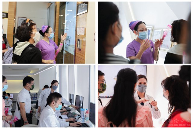 李凯欣主任和吕金英主任带大家参观了德伦口腔数字化正畸中心,为大家介绍数字化导板种牙的相关理念和口腔严格规范的医疗用品消毒过程,数智体验官们对德伦口腔如此严谨的消毒过程,和数字设备表示了由衷的赞赏,赞叹不已。
