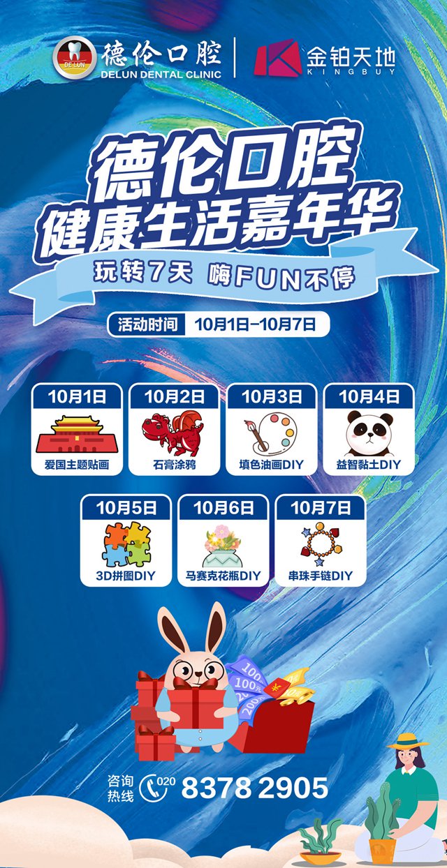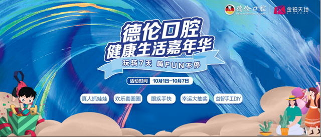 德伦口腔自2011年成立起,致力让广大市民拥有一口健康好牙而不懈努力,2022年10月1日-10月7日,德伦口腔联合嘉禾金铂天地打造健康生活嘉年华——“玩转7天,嗨fun不停”。