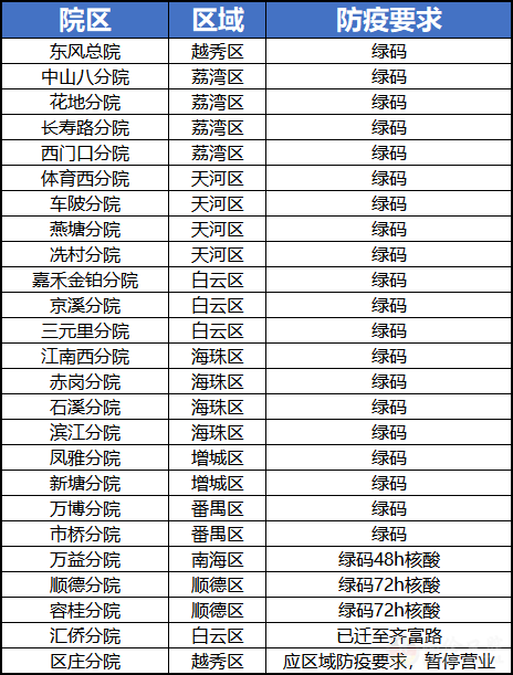 德伦口腔现因应防疫政策已作出到院诊疗要求,到院客户需要出示粤康码绿码和72小时阴性核酸证明(顺德、容桂分院)。各院区到院诊疗要求详情见下表:
