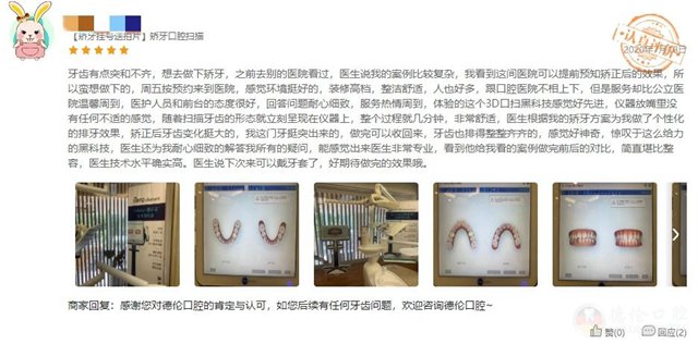 牙齿不是很整齐,想要进行矫正,德伦口腔可以提前预知矫正后的效果,所以过来体验下。这里的医护人员和前台的态度很好,回答问题耐心细致,服务热情周到,体验的这个3D口扫黑科技感觉好先进,整个过程就几分钟,非常舒适。