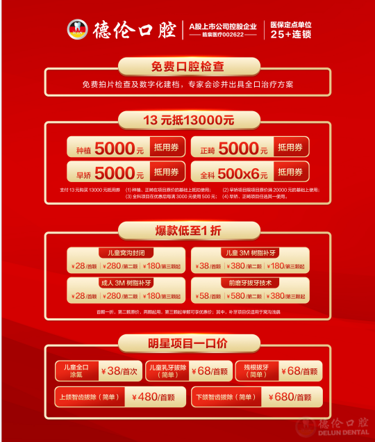 依托德伦口腔集团骨干技术团队缪耀强等医师,孵化医生团队;院内开设数智种植、塑颜正畸、舒适儿牙、显微根管等口腔预防诊疗项目;成立16大医疗保障质控小组,实行博硕医师团会诊制度,进行严格医疗院感质控及5S管理落地,针对市民不同口腔问题进行专科诊疗。