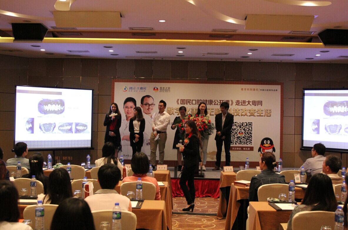 2015年3月29日,由腾讯大粤网主办、德伦口腔协办的《国民口腔健康公开课》第二场“数字化美学正畸,科技改变生活”在希尔顿酒店成功举办,现场吸引了150位大粤网友到场听课,德伦口腔熊小琴医生(隐形矫正认证医师)、崔巧明医生(修复科主任)进行了课题分享。