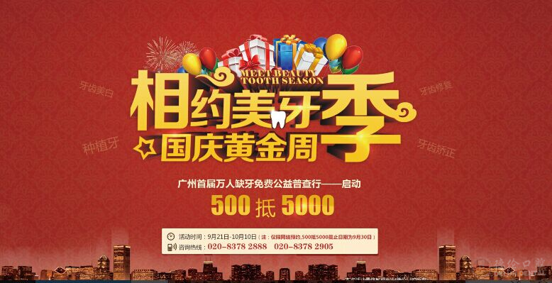 【迎中秋国庆-相约美牙季】存500抵5000,活动时间:9月30日截止(仅限网络预约)