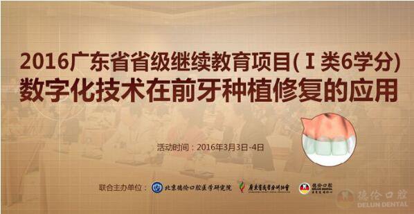 口腔种植界学术盛事——“省级继续教育项目(Ⅰ类6学分)《数字化技术在前牙种植修复的应用》峰会将于2016年3月3—4日召开,旨在针对前牙区种植的风险评估预防、骨量不足处理、美学效果的保存和改善、数字化技术应用等疑难和热点问题进行研究探讨。本次广州德伦口腔荣获举办“省级继续教育项目(I类6分学)”的资格,是口腔医疗界对德伦口腔六年成绩的肯定。德伦口腔徐院长表示:必不负众望,全力办好此次峰会,努力提升华南前牙种植修复技术水平,促进口腔行业繁荣发展。
