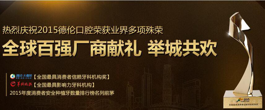德伦口腔的服务与治疗获得众多顾客的一直好评,顾客满意度高!2015年德伦口腔荣获凤凰网评选“品质服务医疗机构”、羊城晚报颁发的“全国具有影响力牙科机构”,腾讯大粤网“颇受消费者信赖牙科机构奖”等诸多荣誉。德伦口腔始终坚持把顾客的体验度放在第一,致力于为顾客提供优质、个性化、口腔治疗服务!