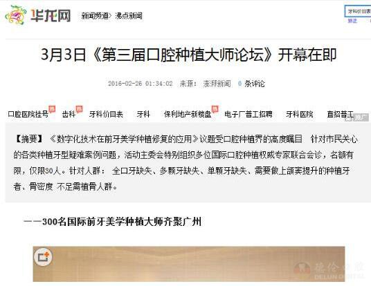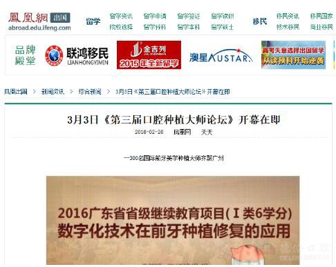 凤凰网:报道“3月3日《第三届口腔种植大师论坛》开幕在即”引发广大网友热烈关注