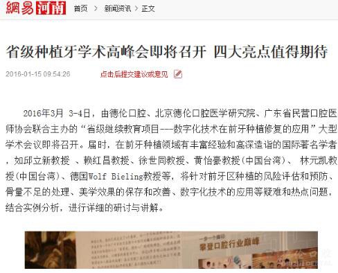 河南网易新闻网:报道《第三届口腔种植大师论坛》即将召开,解密论坛四大亮点。