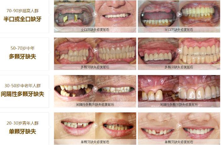 不同牙齿缺失修复案例: