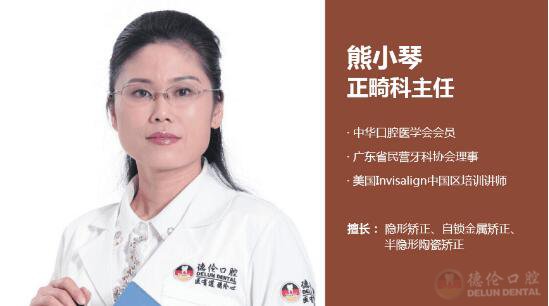 熊小琴,德伦口腔正畸科主任。毕业于广州医学院、从事口腔正畸及牙齿美容修复临床工作近二十多年。并多次参加中、美、韩等多国的学术研讨会,对隐形正畸及脸部四维美学正畸深有研究,综合运用多种矫正技术将传统的矫治疗程缩短30%—50%,用专业、细心、耐心的诊疗服务帮助众多深受牙齿不齐困扰的患者找回自信笑容。